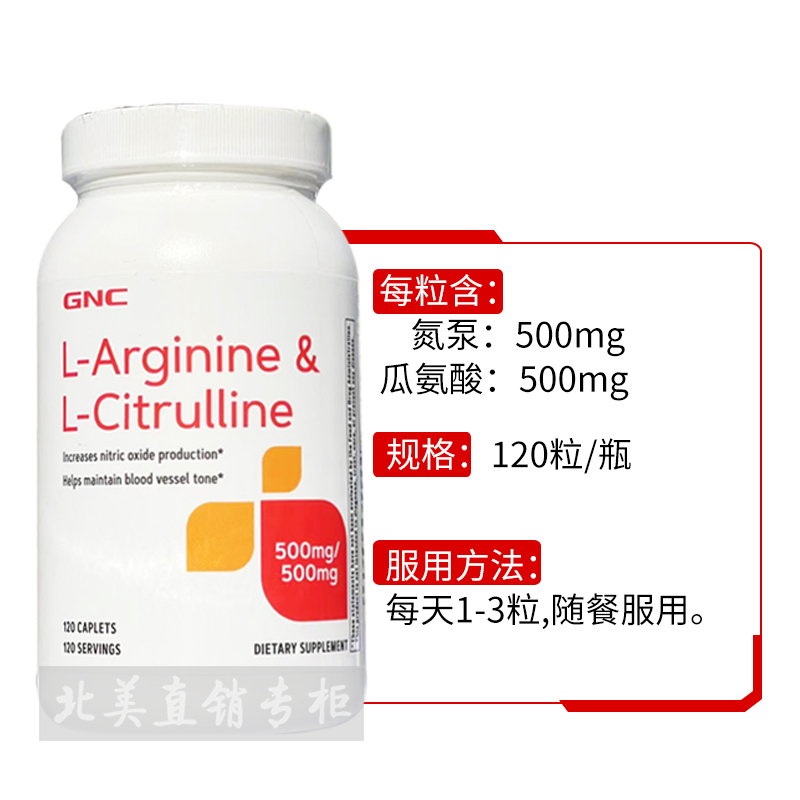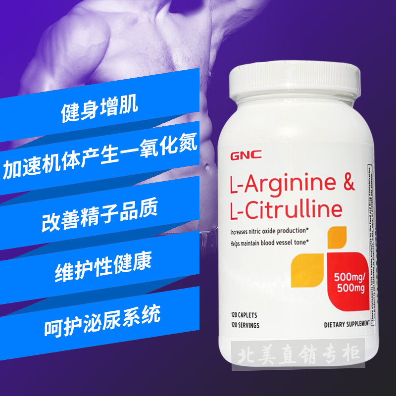 保税美国GNC氮泵精氨酸瓜氨酸片120粒男女左旋一氧化氮健身备孕L-