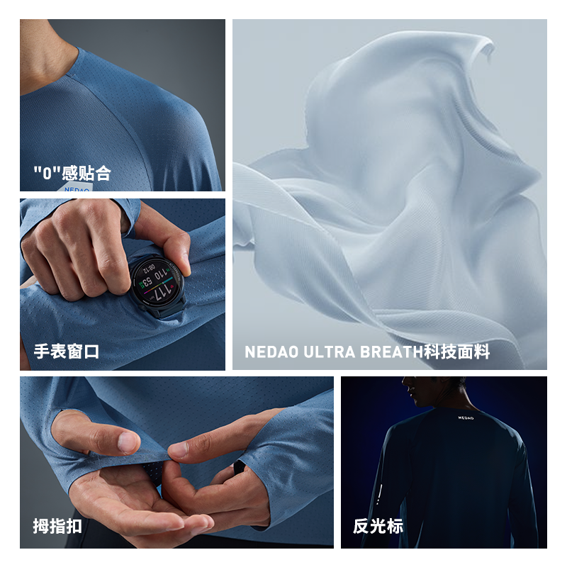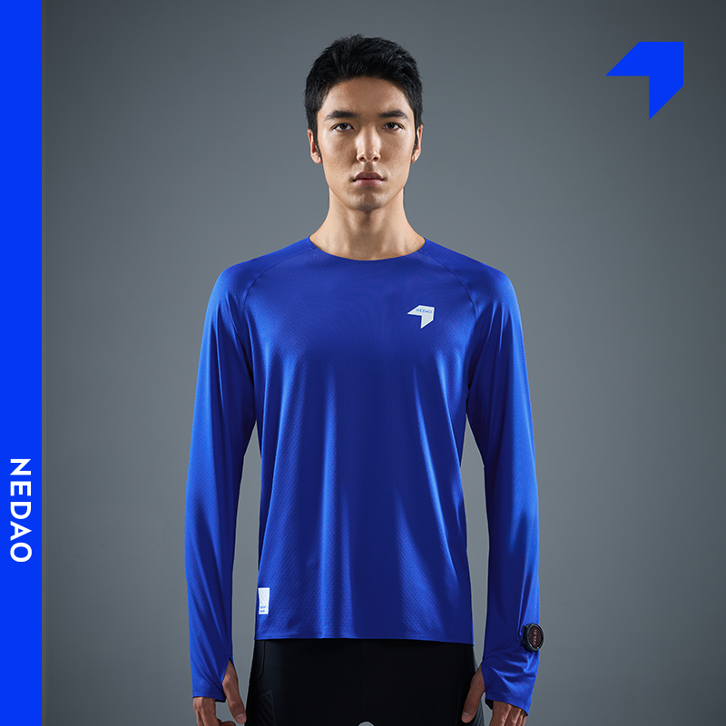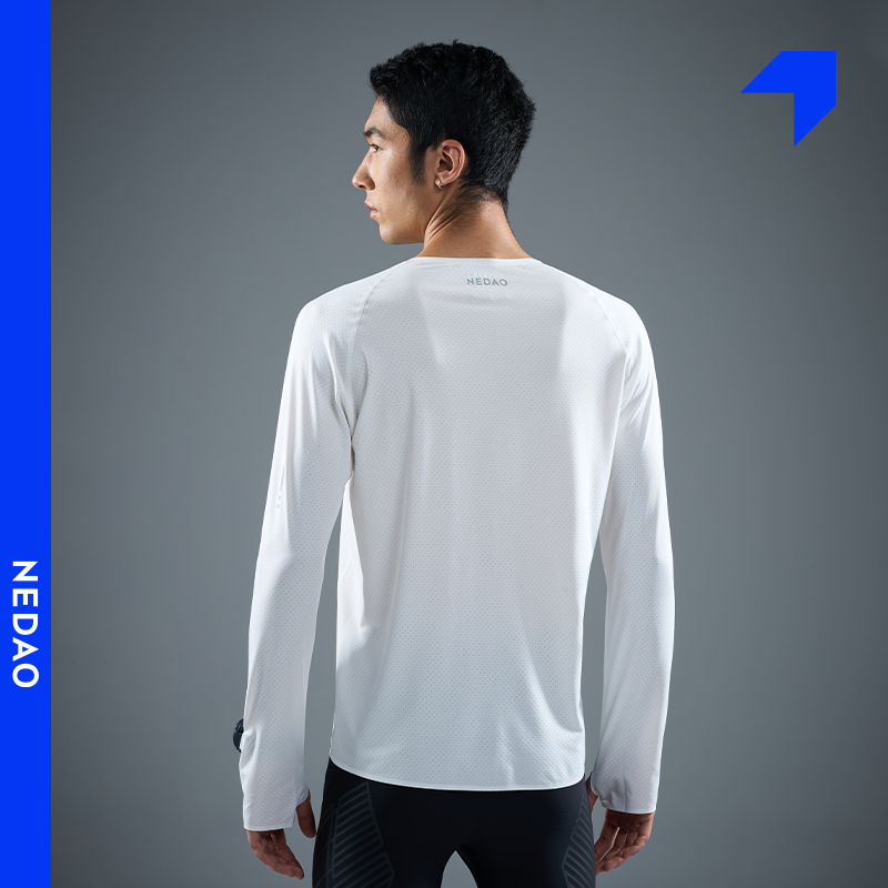 内道网眼跑步长袖科技面料透湿男秋冬训练马拉松长跑圆领长袖