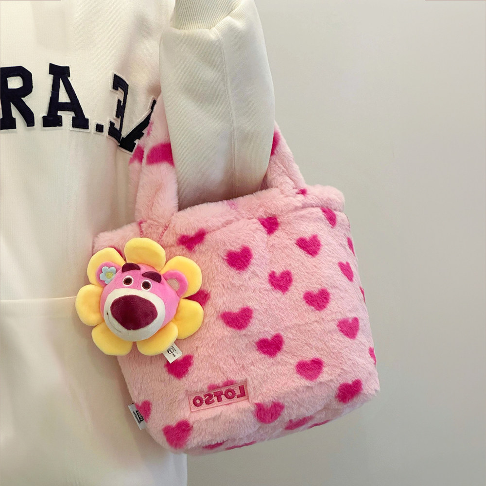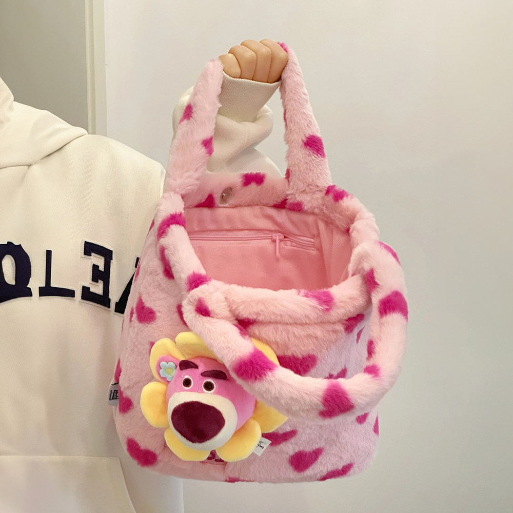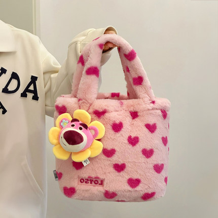 迪士尼正版草莓熊毛绒包维尼熊手提包三眼仔可爱女包手提袋送礼物