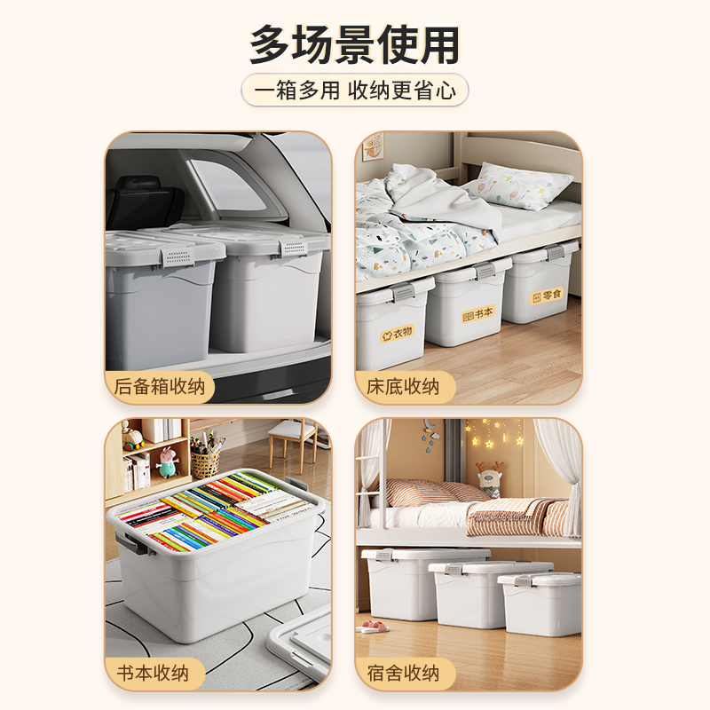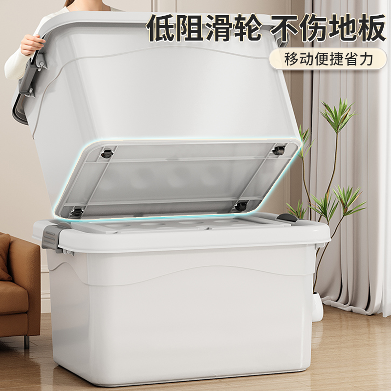3个装加厚塑料收纳箱大容量超大带滑轮家用衣服玩具整理盒储物箱
