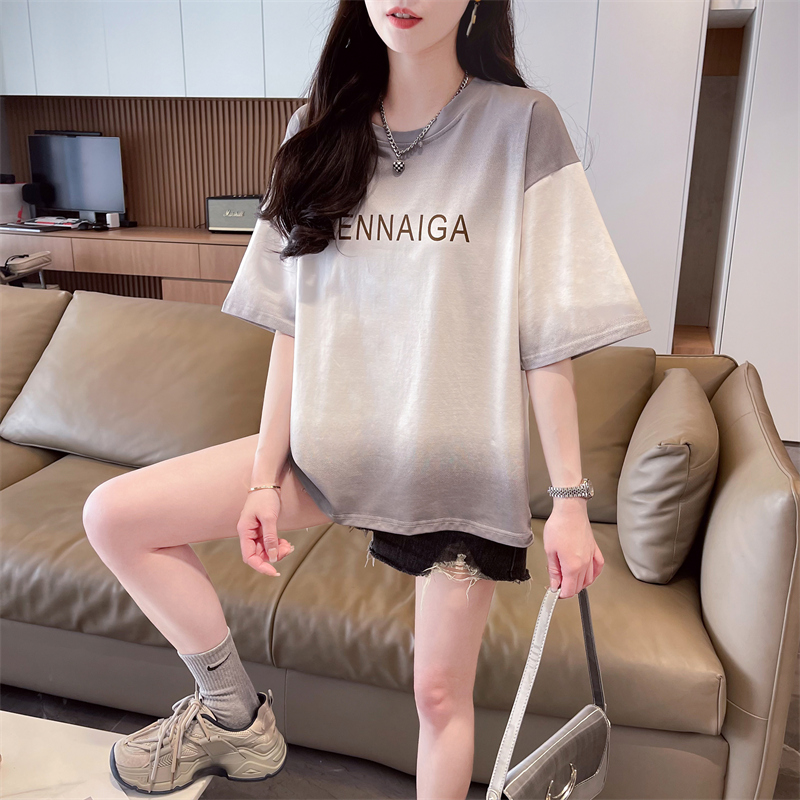 渐变色扎染短袖t恤女夏季韩版宽松大码女装个性小众设计感上衣服