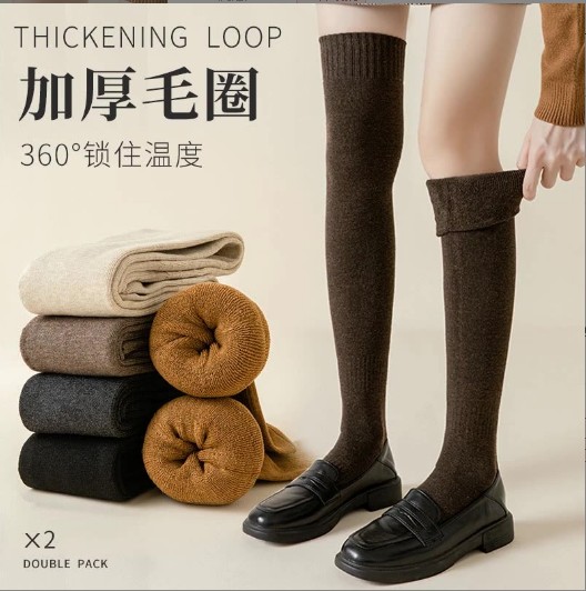 女高筒袜秋冬季加绒加厚保暖大腿长袜冬天半截长筒袜膝盖过膝袜子