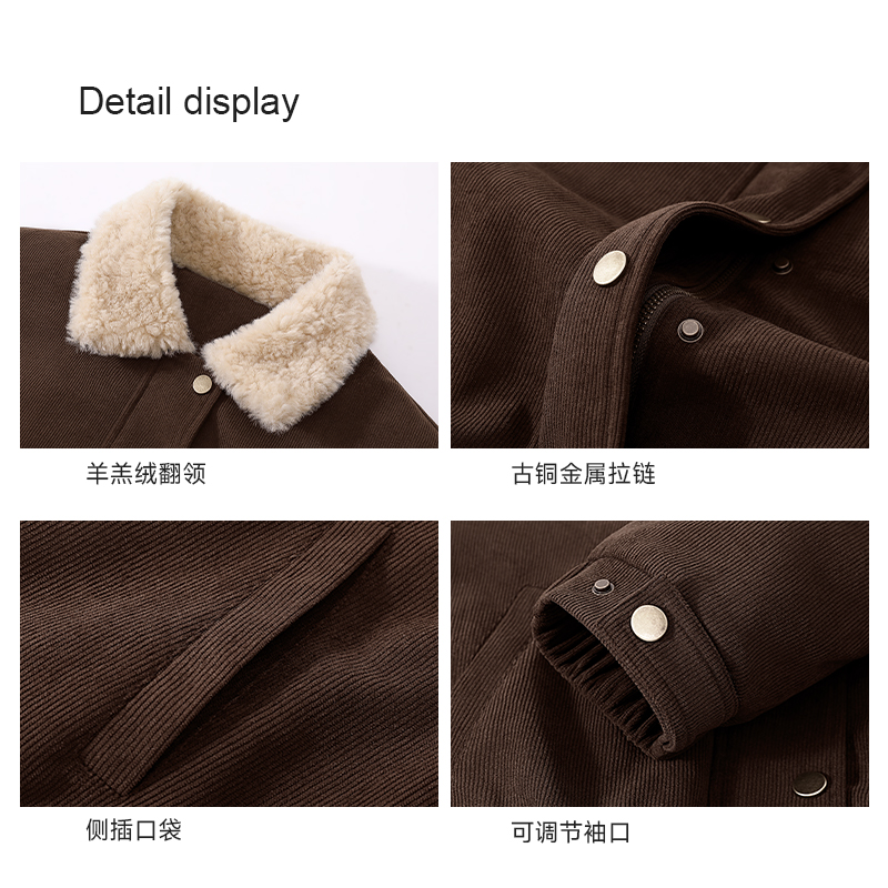 KHV真维斯咖色翻领工装夹克上衣女款2025冬季新款棉服灯芯绒外套