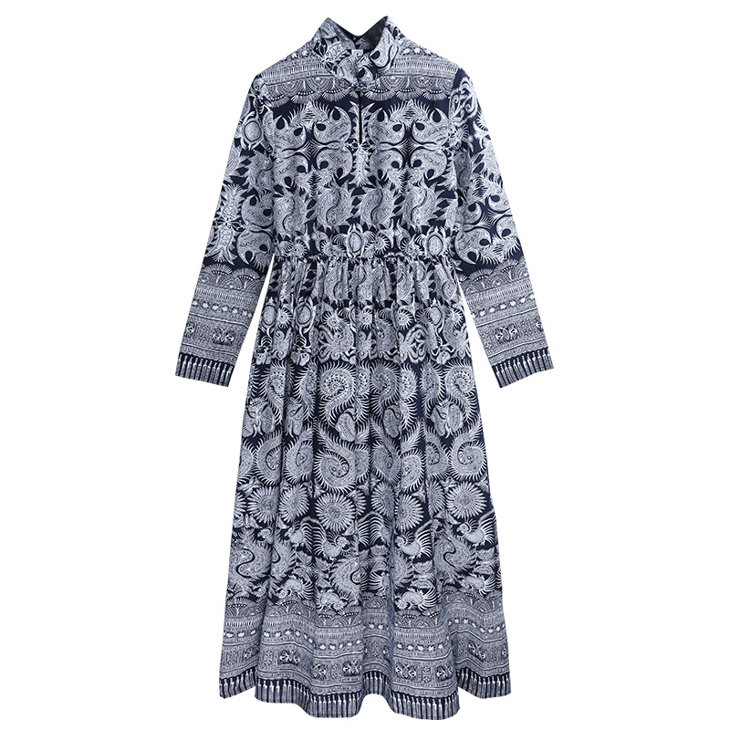 杨丽萍官方原创设计民族风新中式风印花立领蜡染棉麻连衣裙夏秋