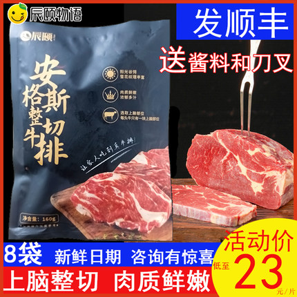 辰颐物语安格斯牛排袋装8片整切上脑家用牛肉排送酱刀叉顺丰包邮