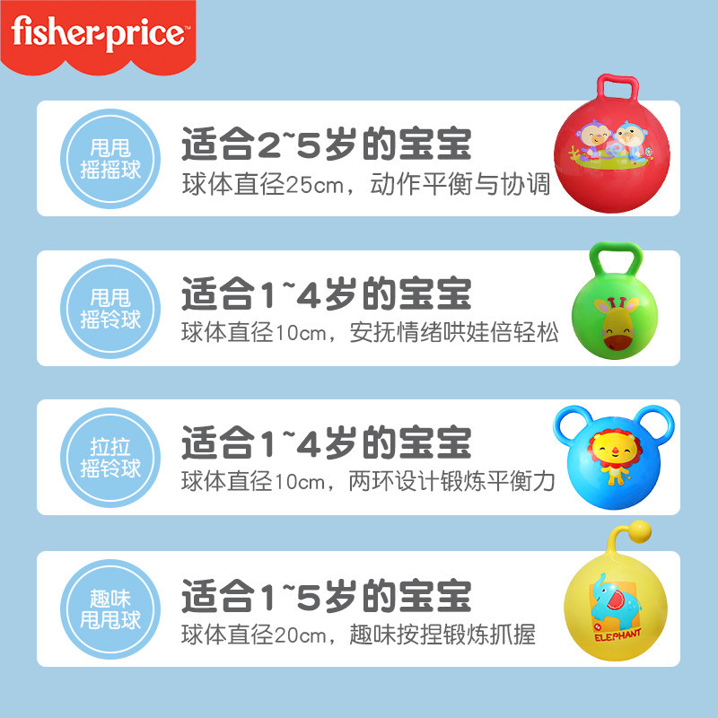 费雪婴儿球类玩具儿童小皮球婴儿玩具球可啃咬宝宝手柄球摇铃球球