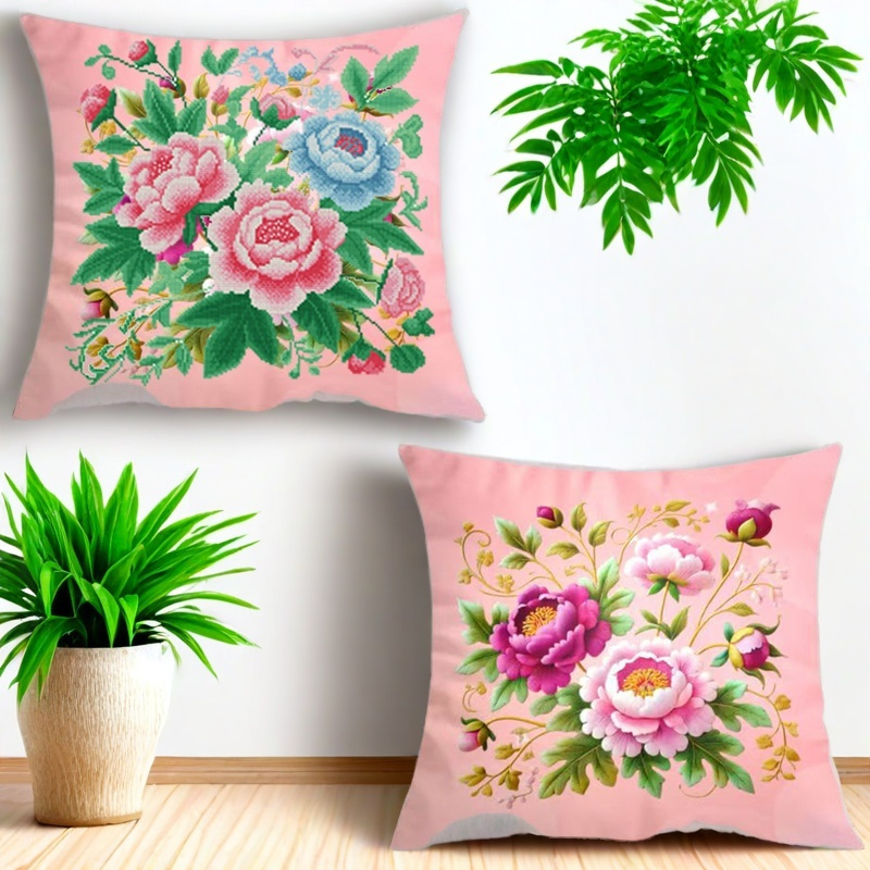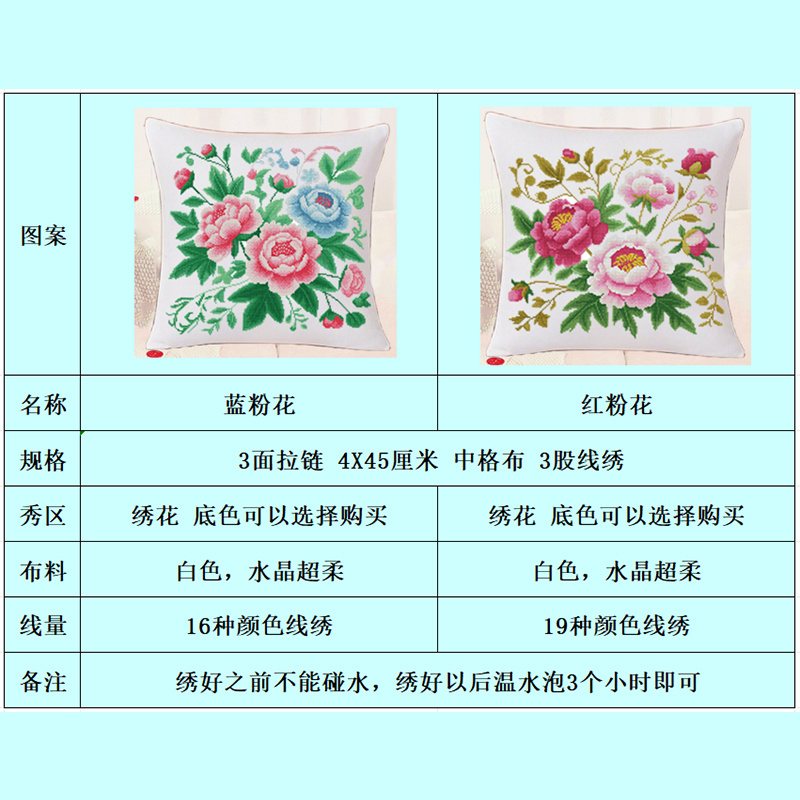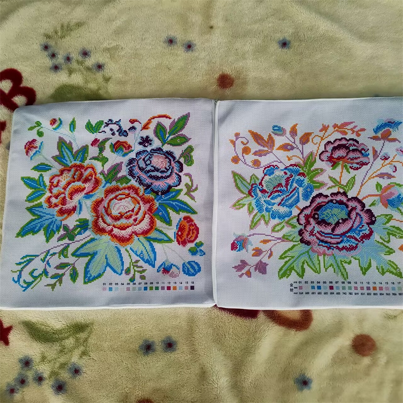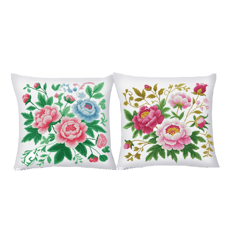 三面拉链45厘米新款十字绣抱枕自己绣花客厅沙发床头汽车牡丹花类