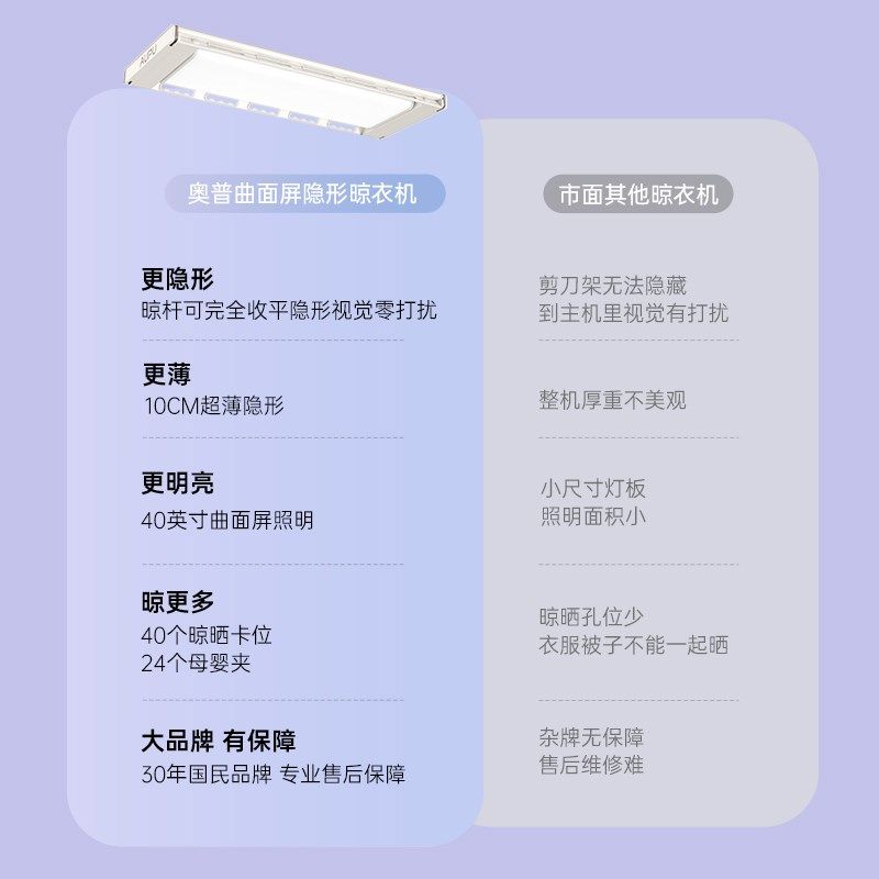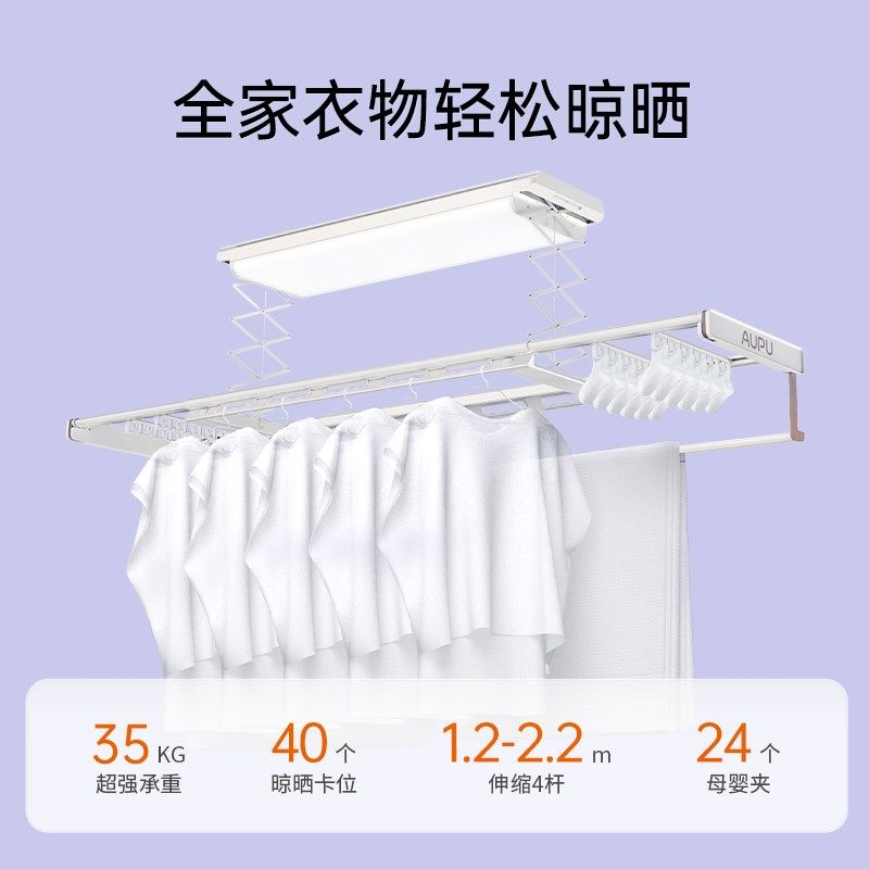 奥普曲面屏电动晾衣架离线语音智能遥控升降阳台晒衣架