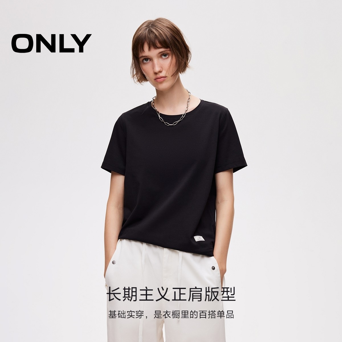 ONLY织标正肩合体舒适圆领T恤
