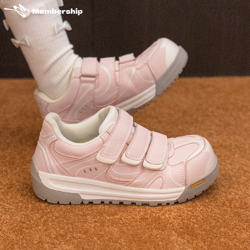 多嘴驴Donkey粉色丑萌板鞋女款德训鞋甜美可爱大头鞋魔术贴面包鞋
