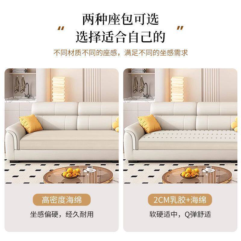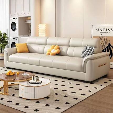奶油风小户型真皮沙发现代简约出租房家用客厅三人位直排皮艺沙发