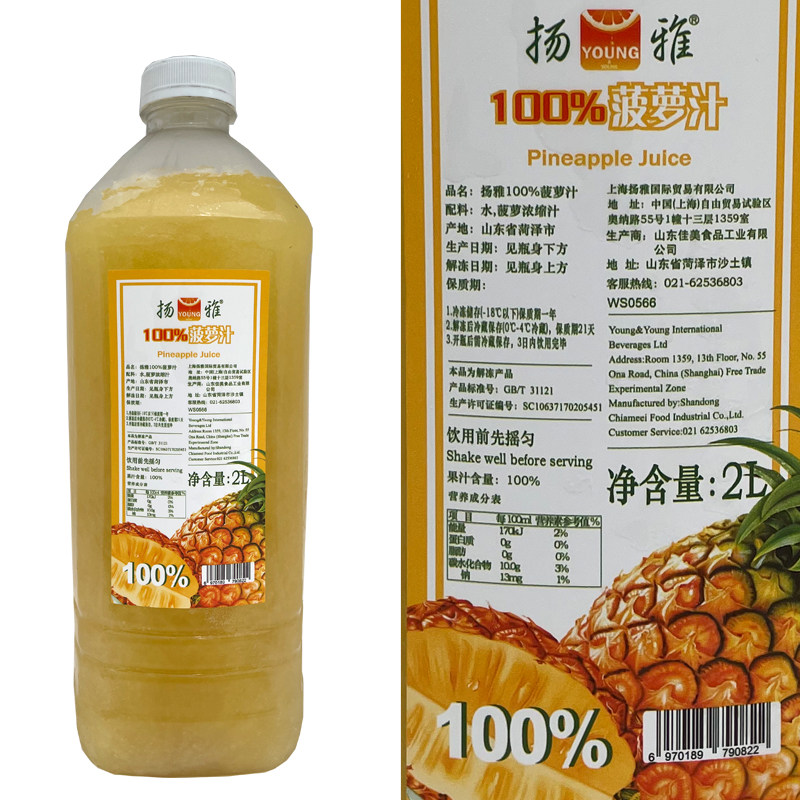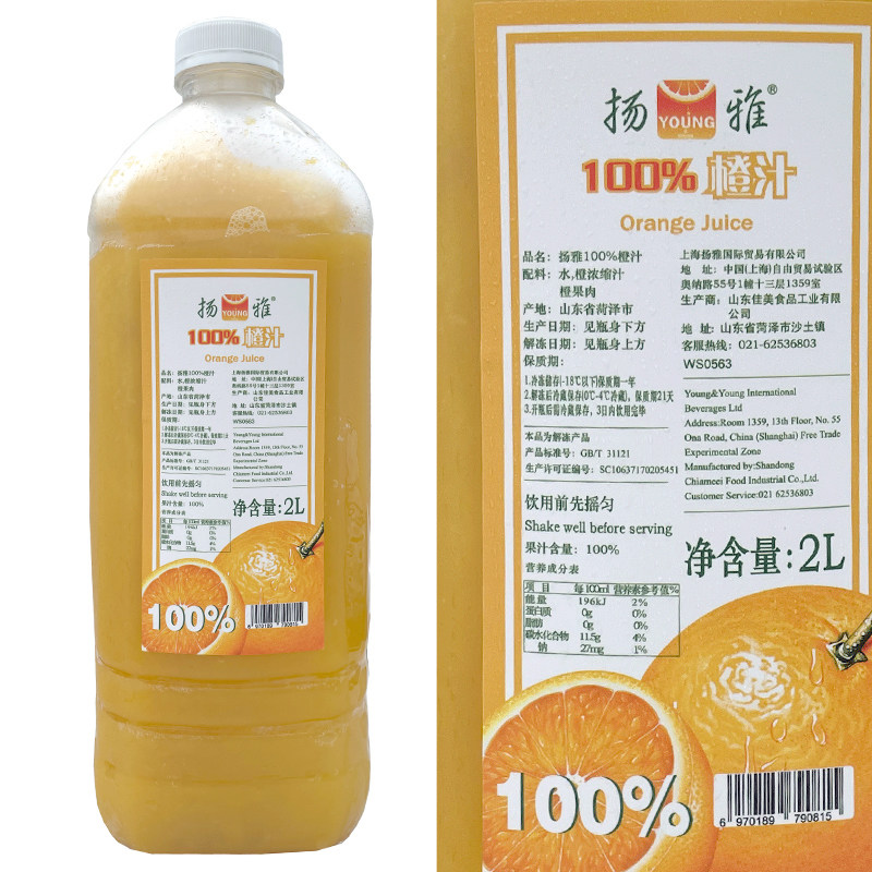 扬雅100果汁2L橙西柚菠萝葡萄汁冷冻鲜榨汁奶茶店原料FC贡茶商用