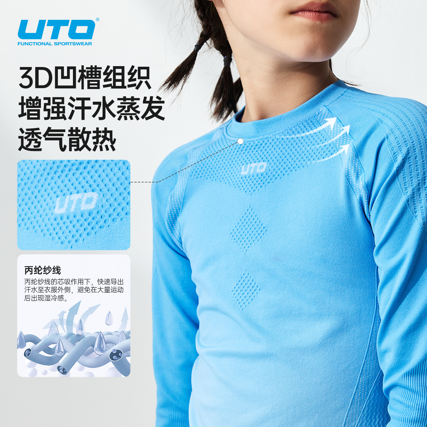 UTO儿童运动保暖速干衣套装男女童秋冬户外登山徒步内衣单向导湿