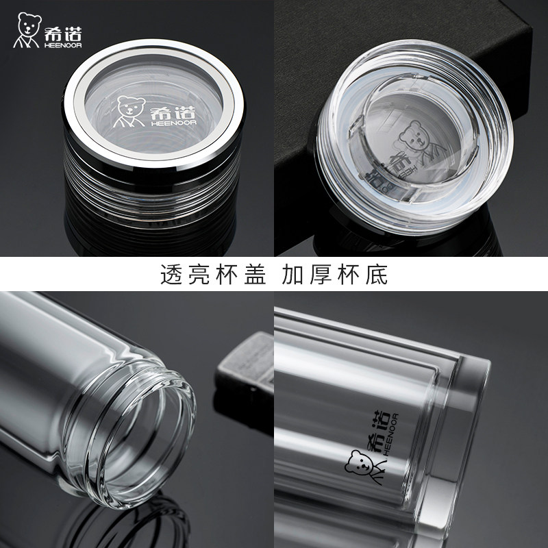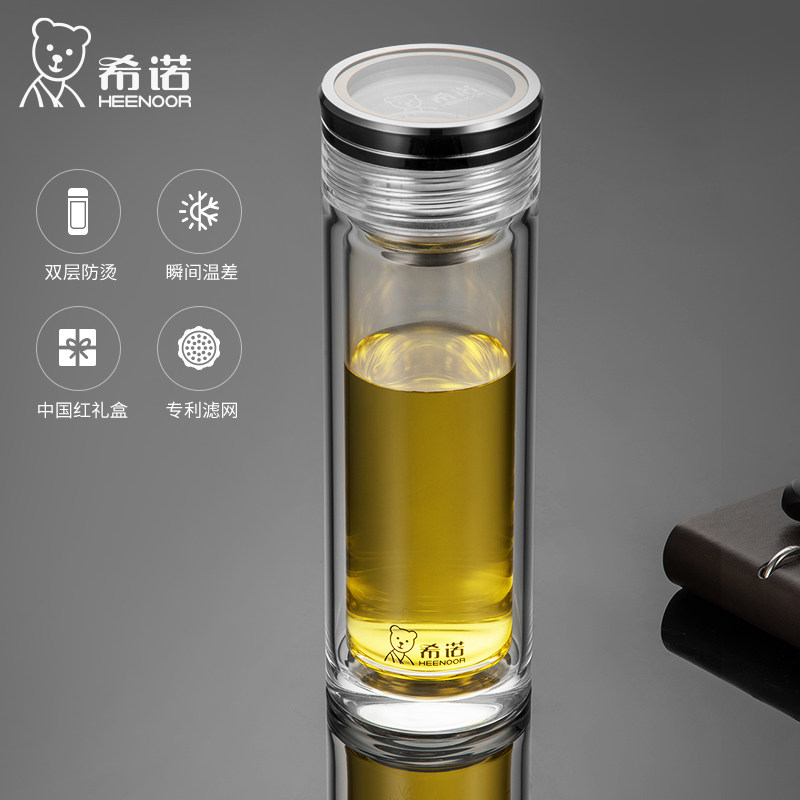 希诺玻璃杯双层办公个人水杯男士大容量保温杯高档车载泡茶杯子