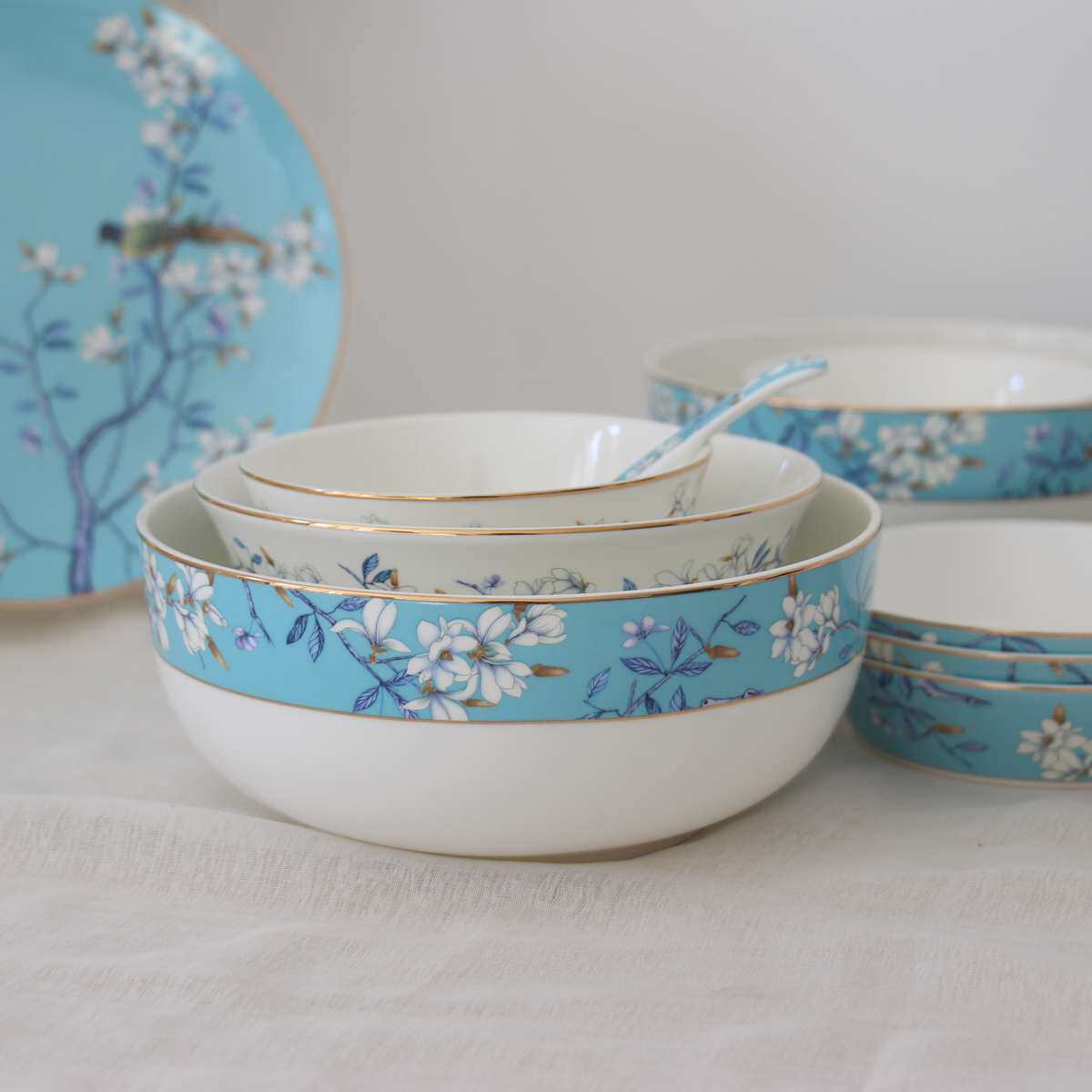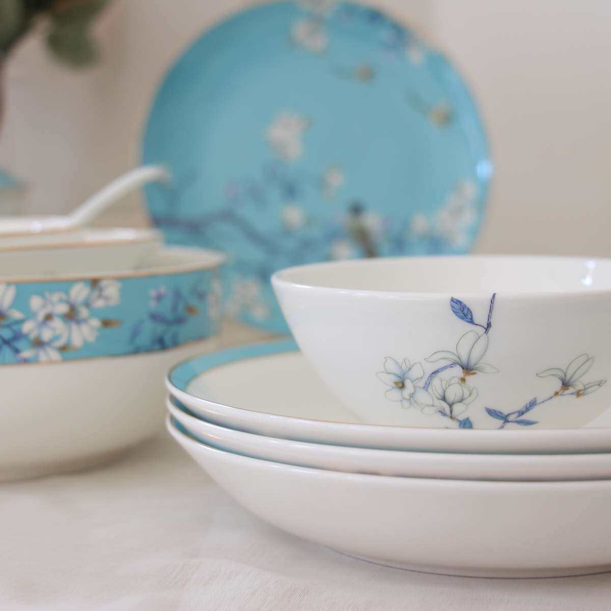 新中式中国风青花碗碟套装瓷器家用高档轻奢水云间骨瓷餐具