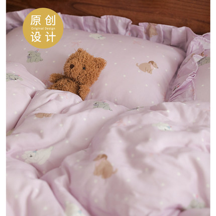 波点蝴蝶结小狗丨纯棉纱布卡通可爱宿舍单件床品床单被套床笠枕套