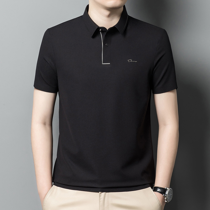 啄木鸟高档桑蚕丝短袖T恤男士时尚无痕休闲薄款冰丝翻领polo衫夏T