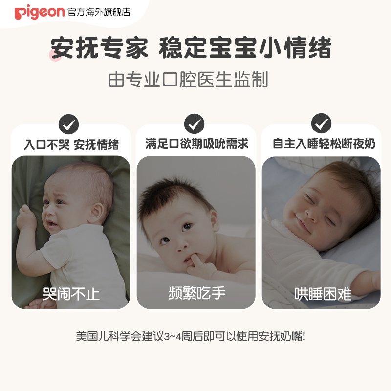 pigeon贝亲安抚奶嘴婴儿0到3-6个月一岁以上新生宝硅胶一体式官旗