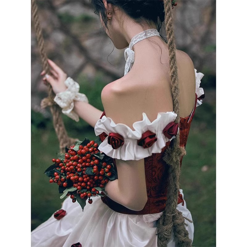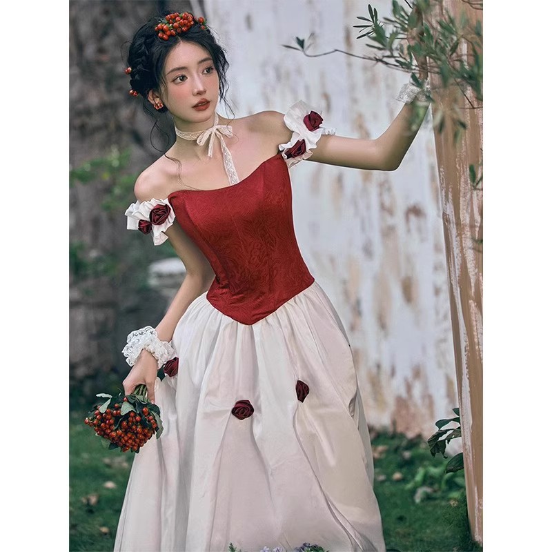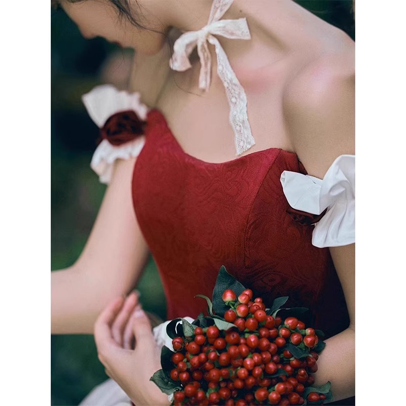 敬酒服红色新娘2025新款法式一字肩结婚订婚礼服高级感生日公主