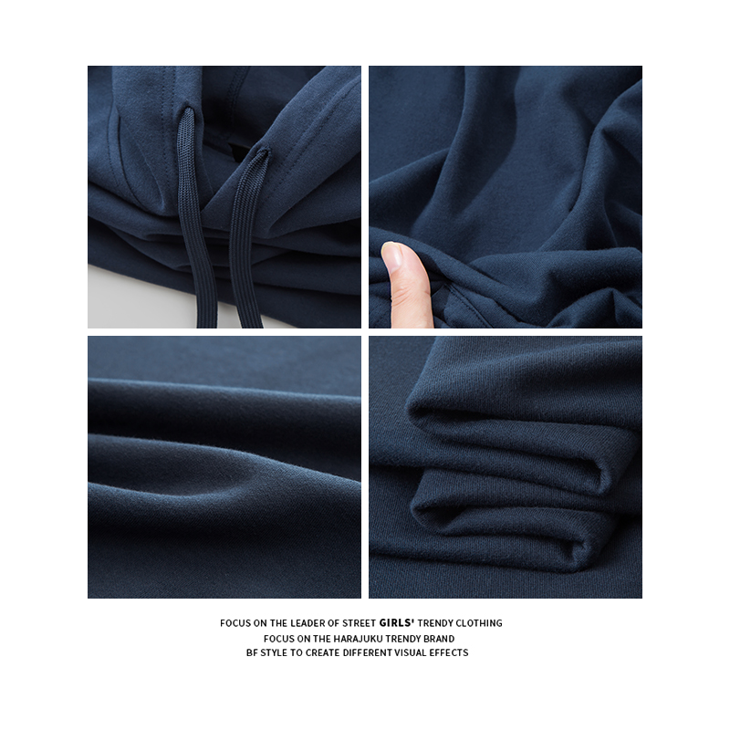 原创字母蓝色套头连帽卫衣女2025年新款薄款初秋宽松带帽学生上衣