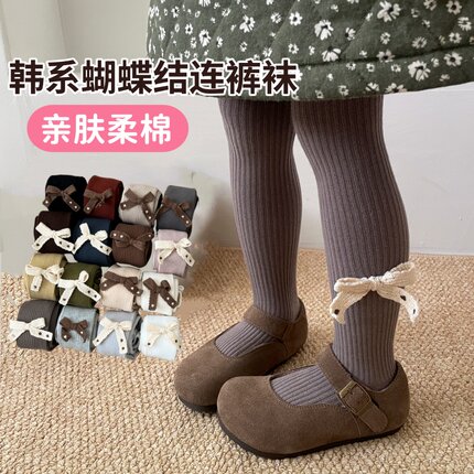 外穿蝴蝶结纯棉连裤袜韩系春秋