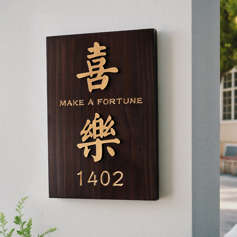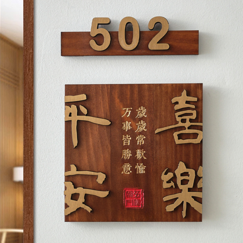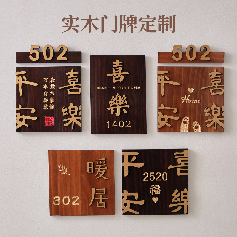 入户门牌号定制实木公寓套间家用门口住宅平安喜乐刻字指示牌木牌