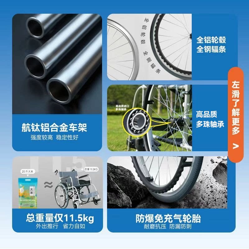 中进智行客铝行者轮椅车老年人专用代步手推折叠超轻便携瘫痪骨折