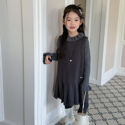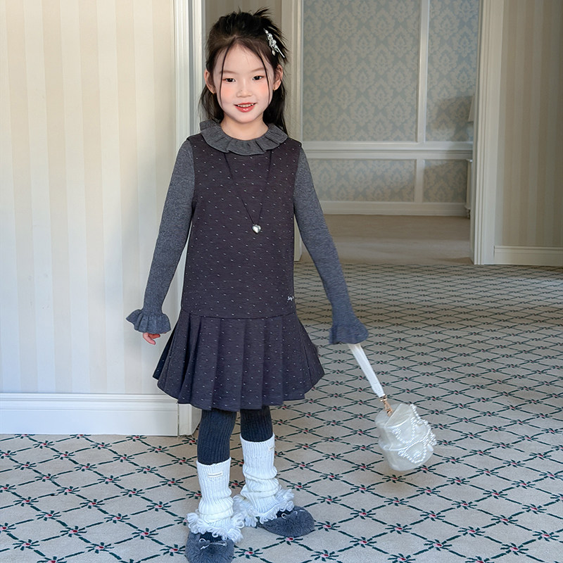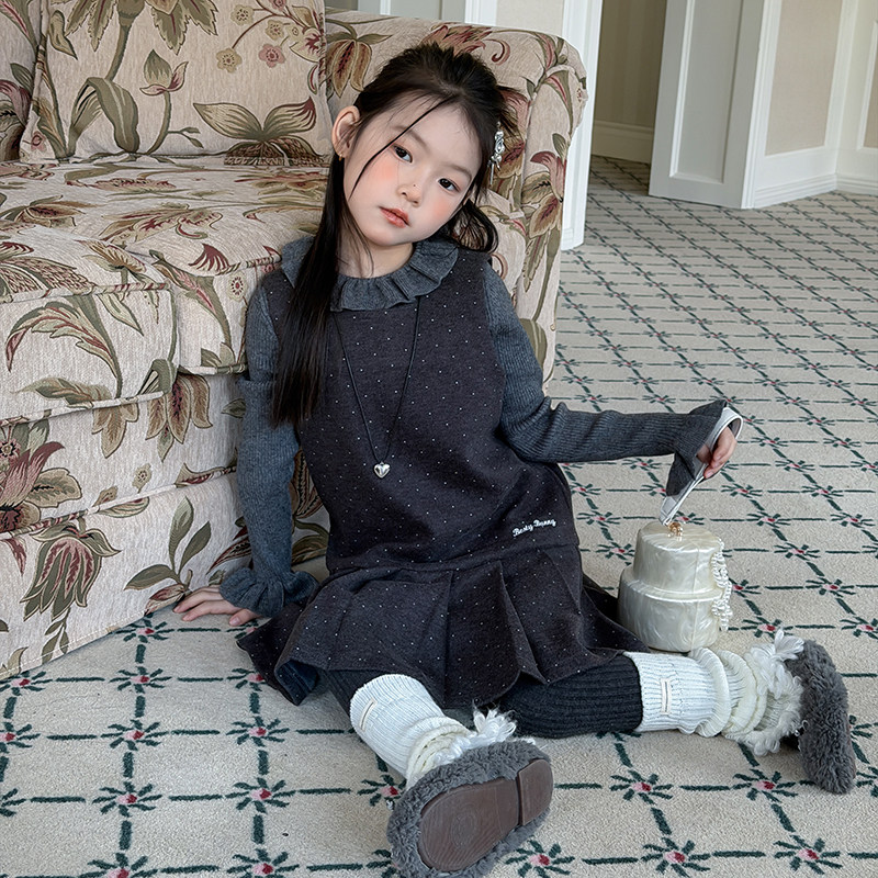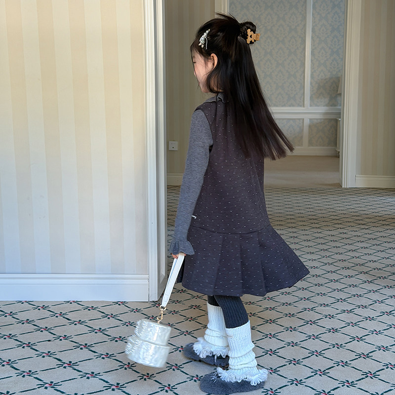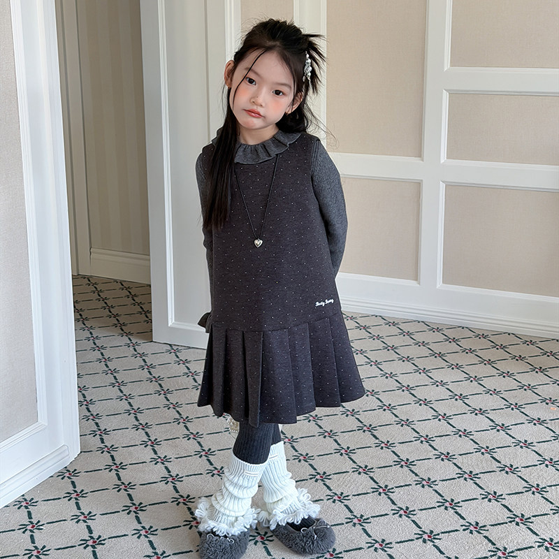 Yumi妈冬季女童宝宝温柔小公主儿童韩系甜美风波点背心裙潮25M032