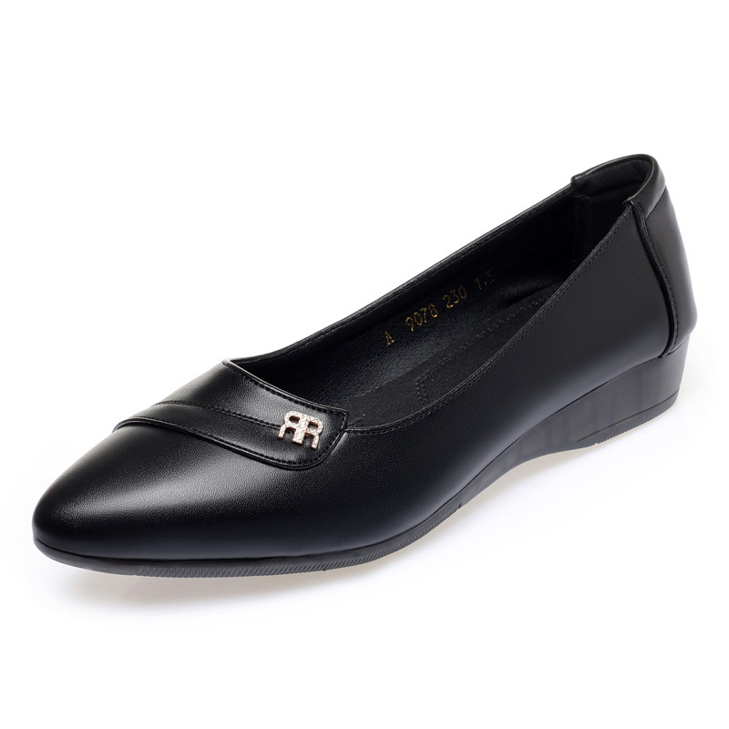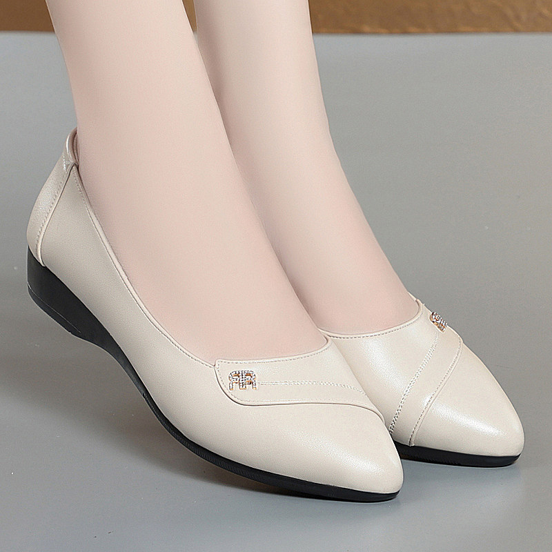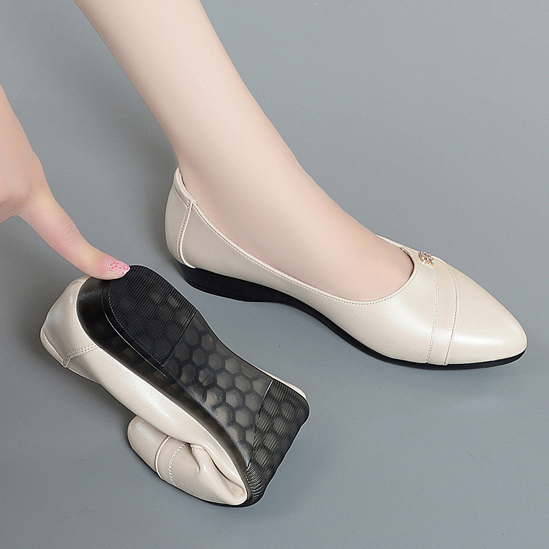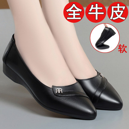 真皮单鞋女平底工作鞋春秋新款软底软皮防滑中老年妈妈鞋大码皮鞋
