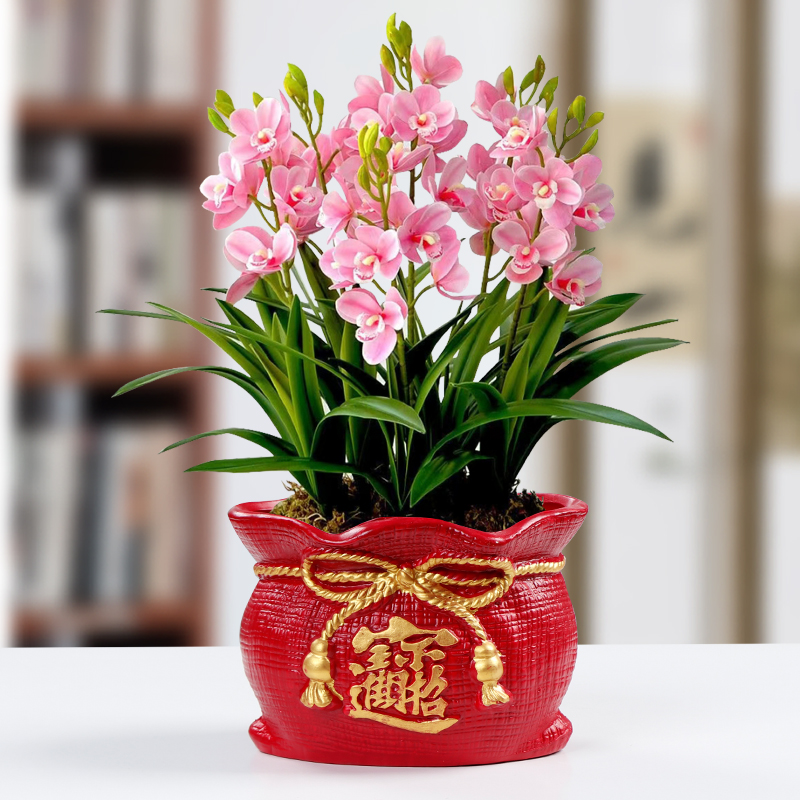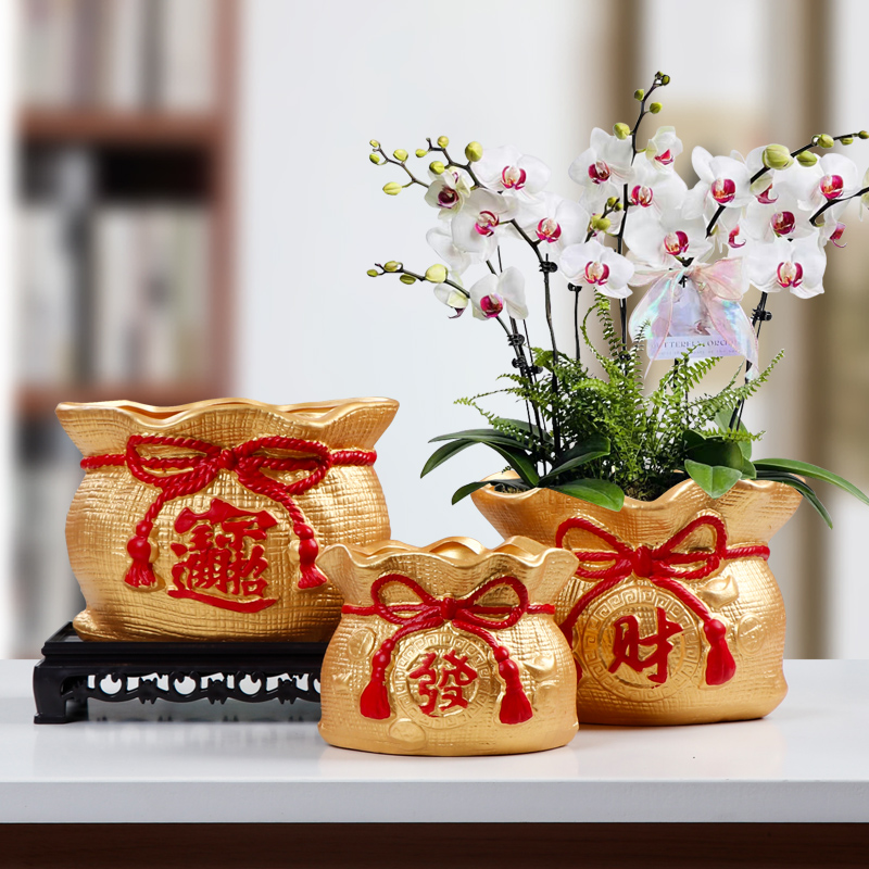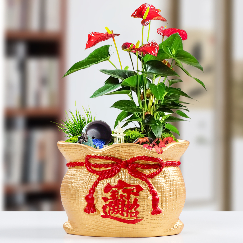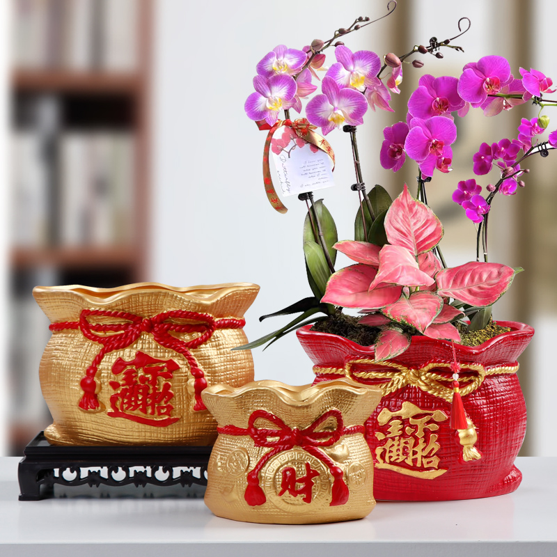 发财树盆栽室内阳台复古红色花盆兰花榕树陶瓷花器多肉绿植老桩盆