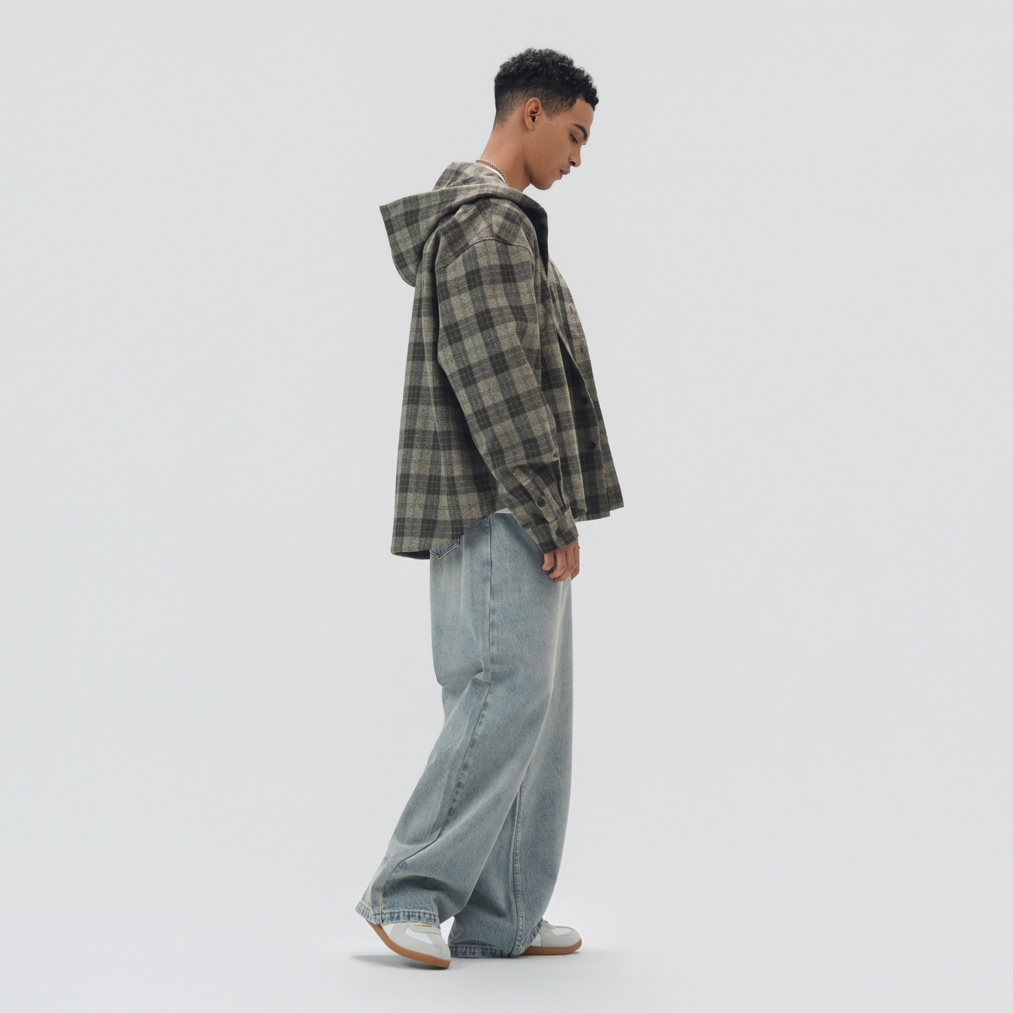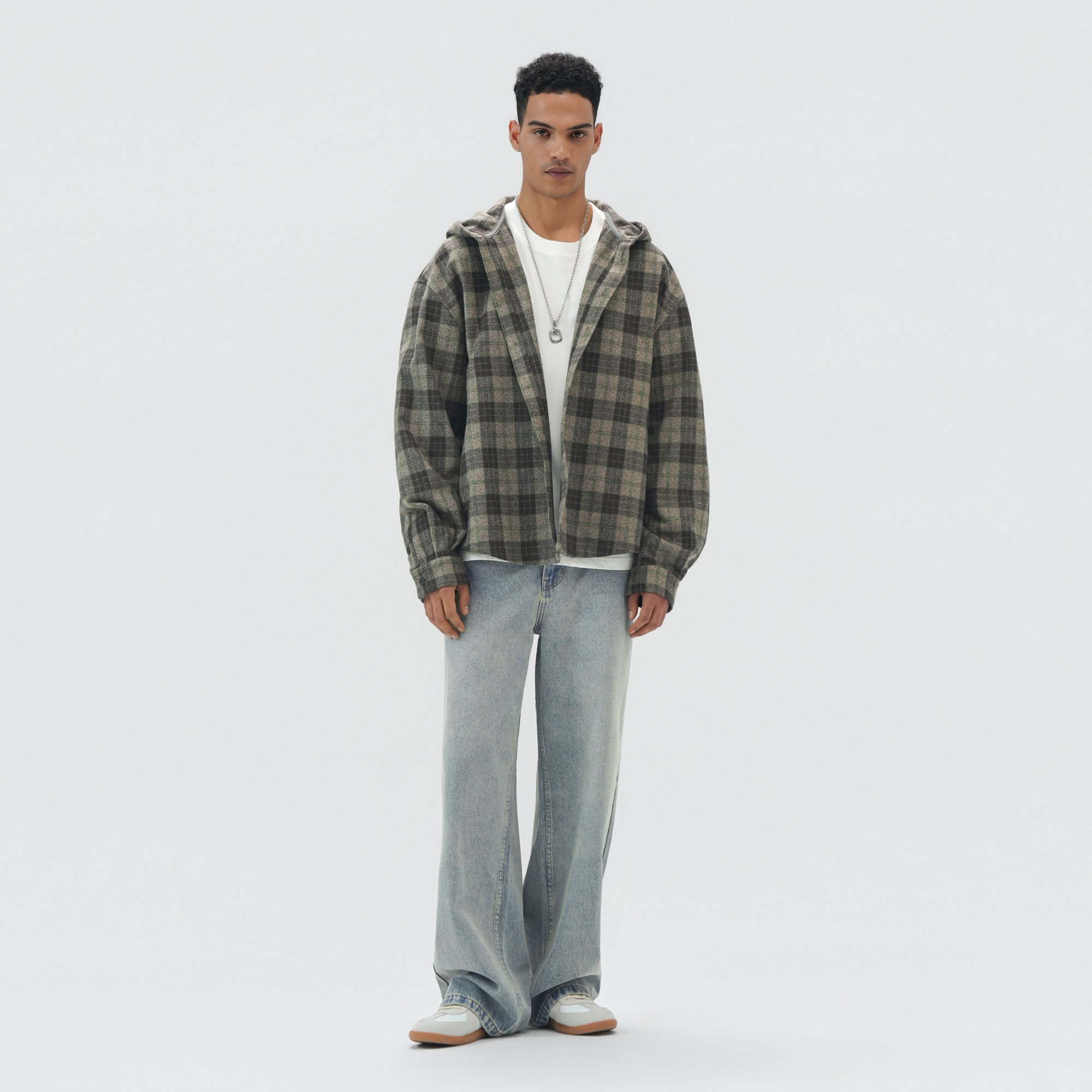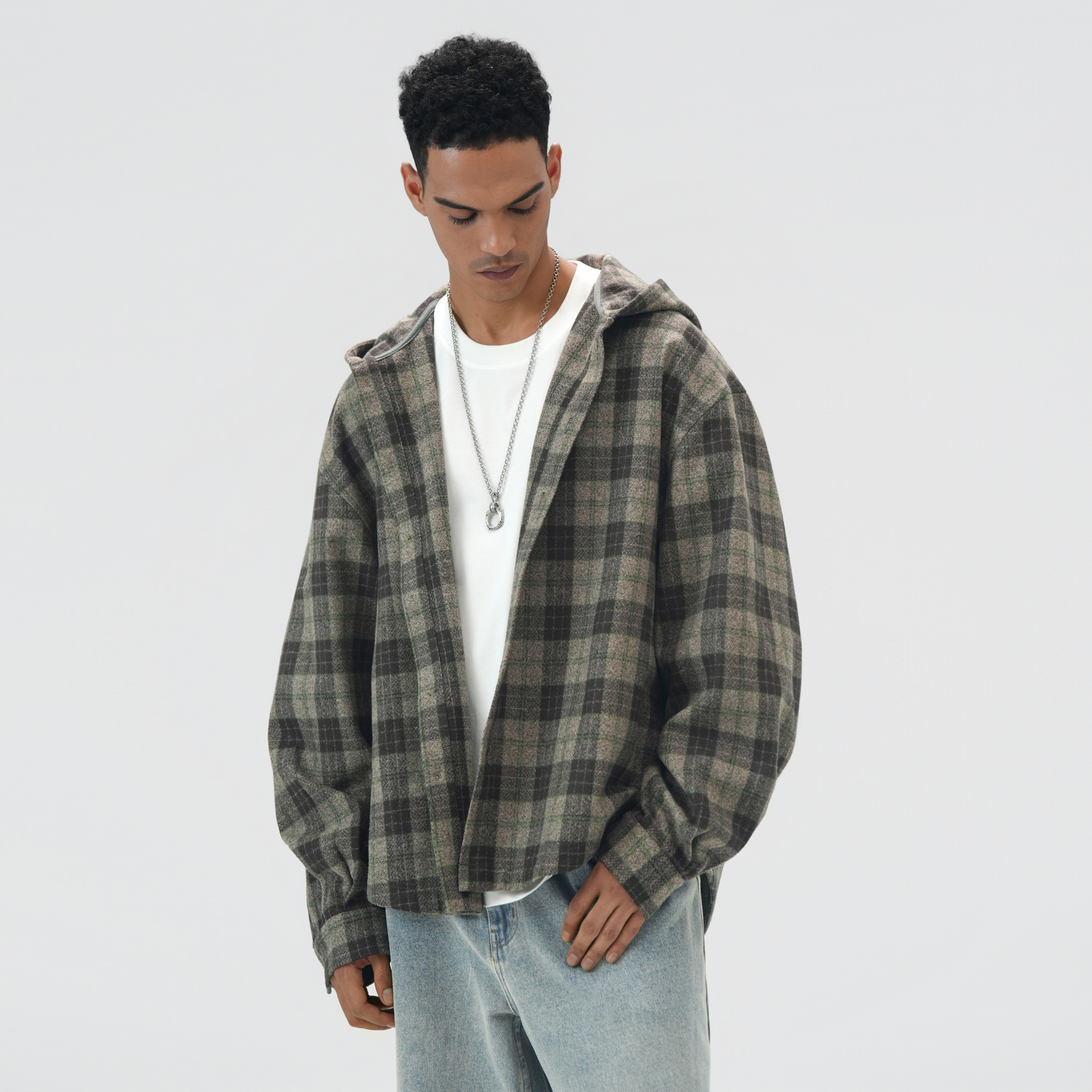 bdpowerup重磅长袖格子衬衫男2025新款复古美式衬衣宽松休闲外套