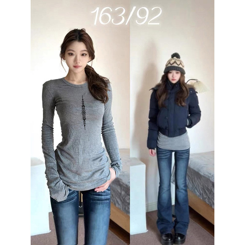 圆领中长款遮屁股正肩长袖女t恤修身打底衫秋冬卫衣内搭纯棉上衣