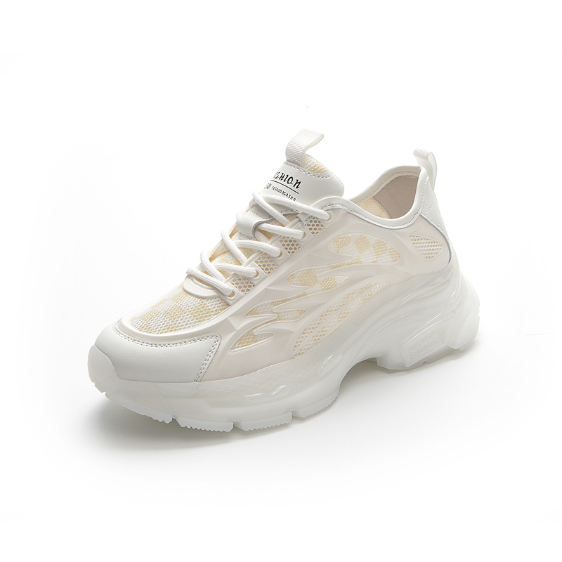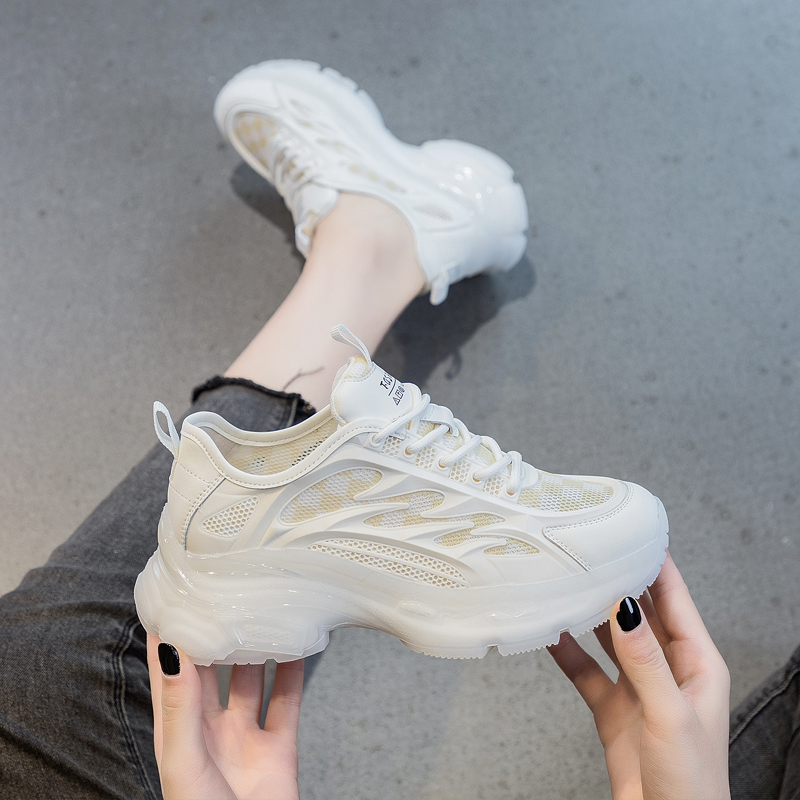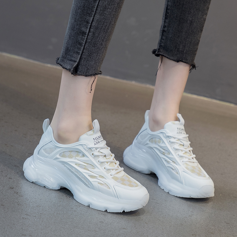 真皮厚底老爹鞋女春夏新款轻便百搭ins潮网鞋透气运动休闲小白鞋