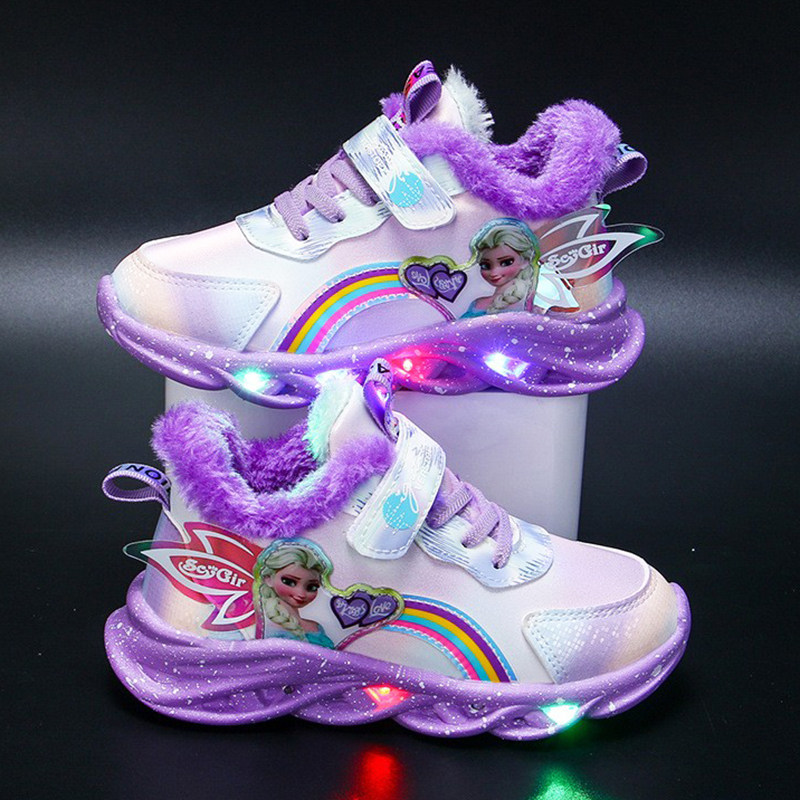 2儿童鞋子冬加绒3女宝4女童运动鞋带灯发光5女孩夹棉鞋薄8公主6岁