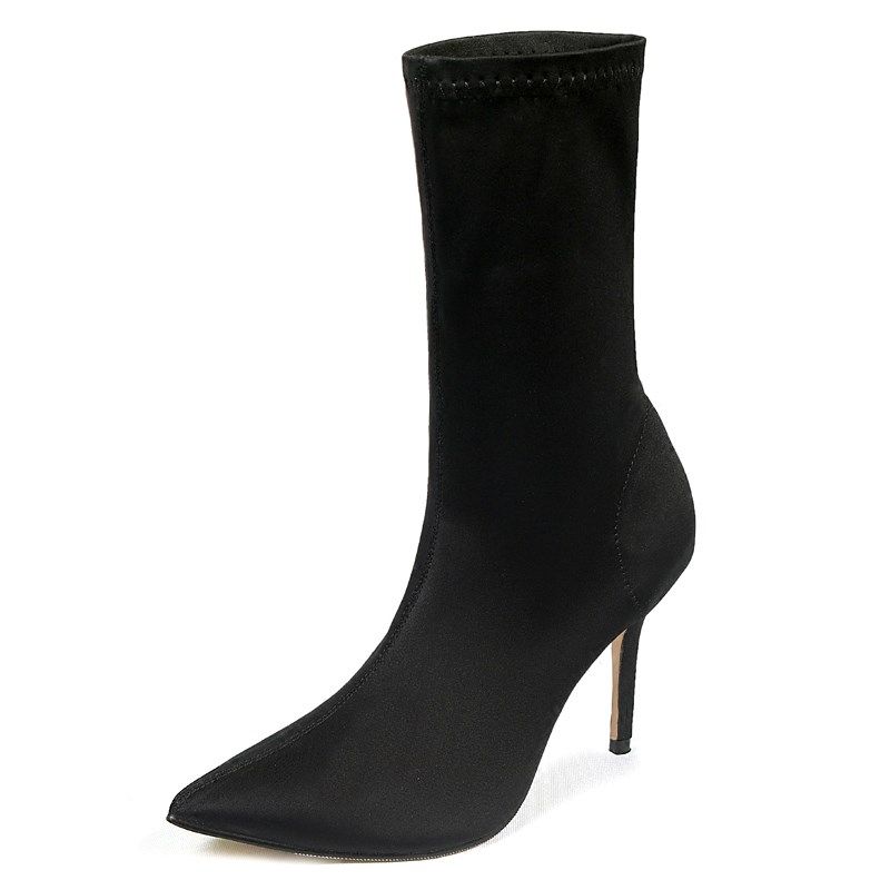 网红短靴女春秋单靴细跟弹力靴显脚小瘦瘦靴高跟鞋尖头中筒靴薄款