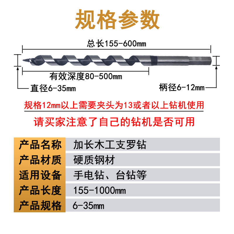 支罗钻头六角柄木工钻头6-35mm开孔器加长麻花木头钻孔工具扩孔钻