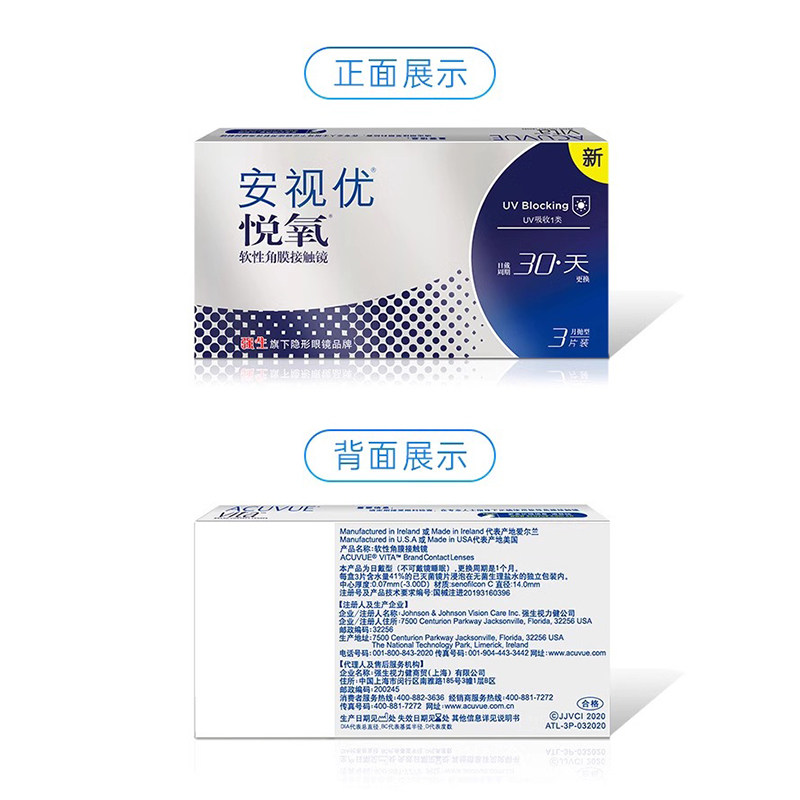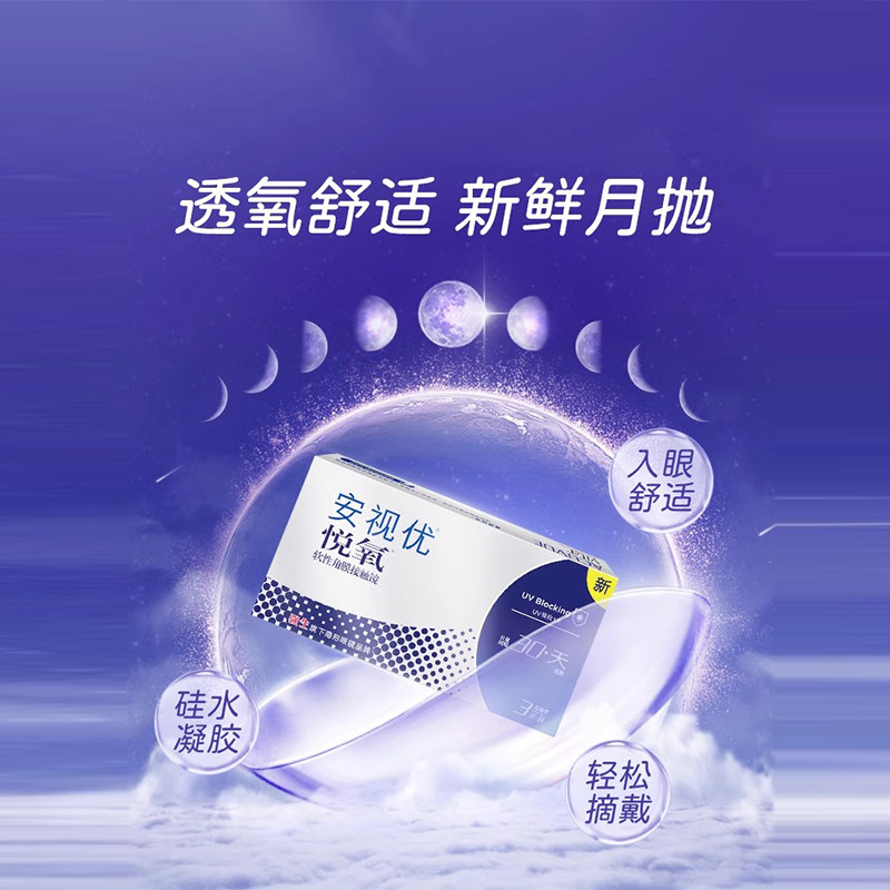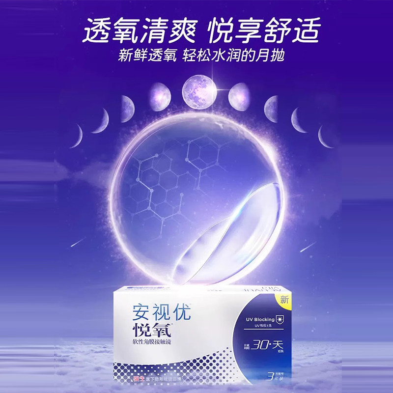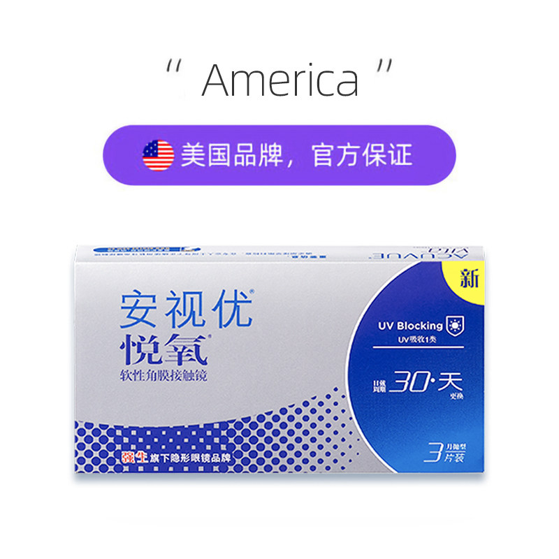 【自营】强生安视优悦氧3片月抛隐形眼镜硅水凝胶防UV高透氧透明