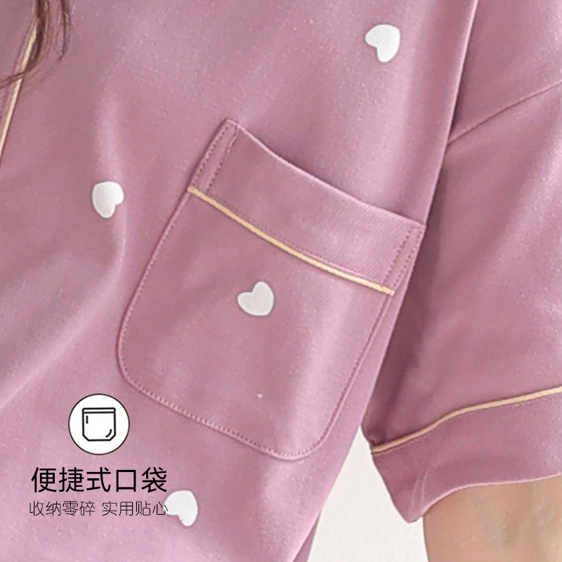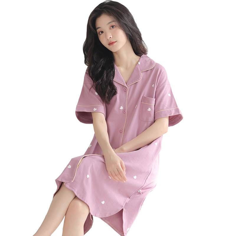 浪莎开衫睡裙女士夏天睡衣短袖纯棉夏季薄款中长款衬衫大码休闲款