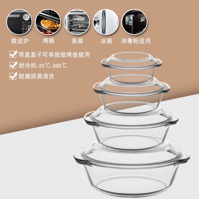 耐热玻璃碗带盖微波炉烤箱专用沙拉碗马蹄糕模具蒸碗汤煲泡面碗大