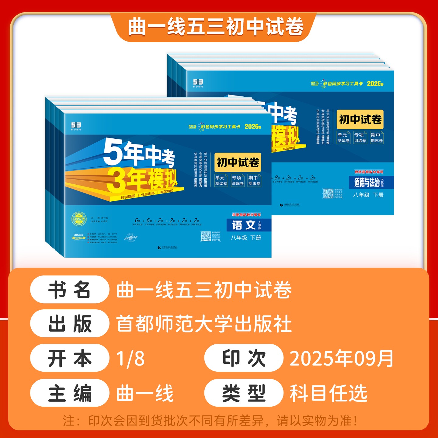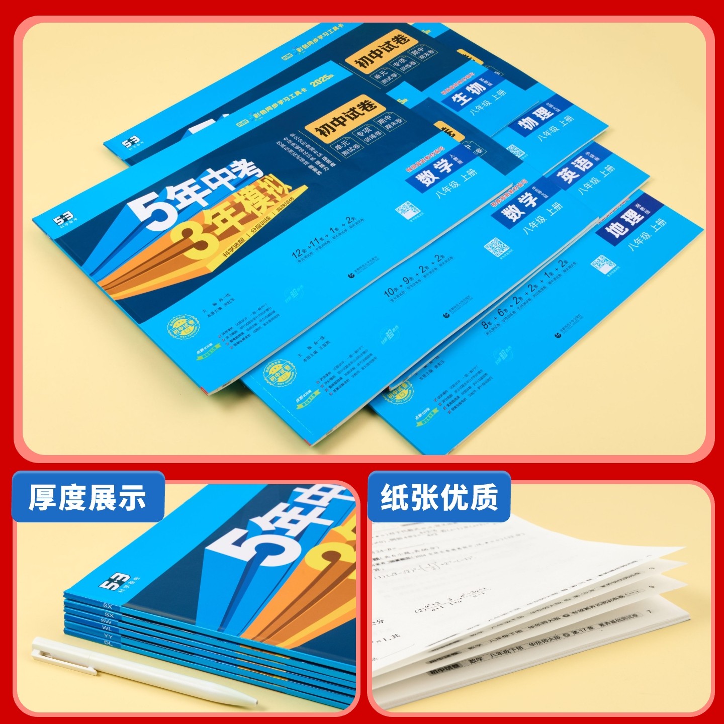 五三试卷八年级上册下册科目任选