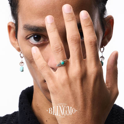 BLINGMO S925纯银原矿绿松石活口戒指男女小众文艺复古可调节尾戒