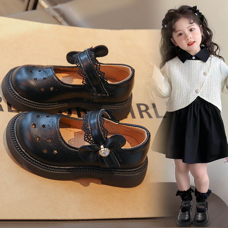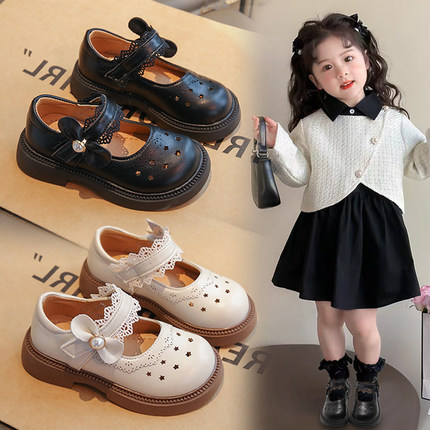 女童鞋子儿童真软皮公主小皮鞋2025春秋季新款女宝宝简约黑色单鞋