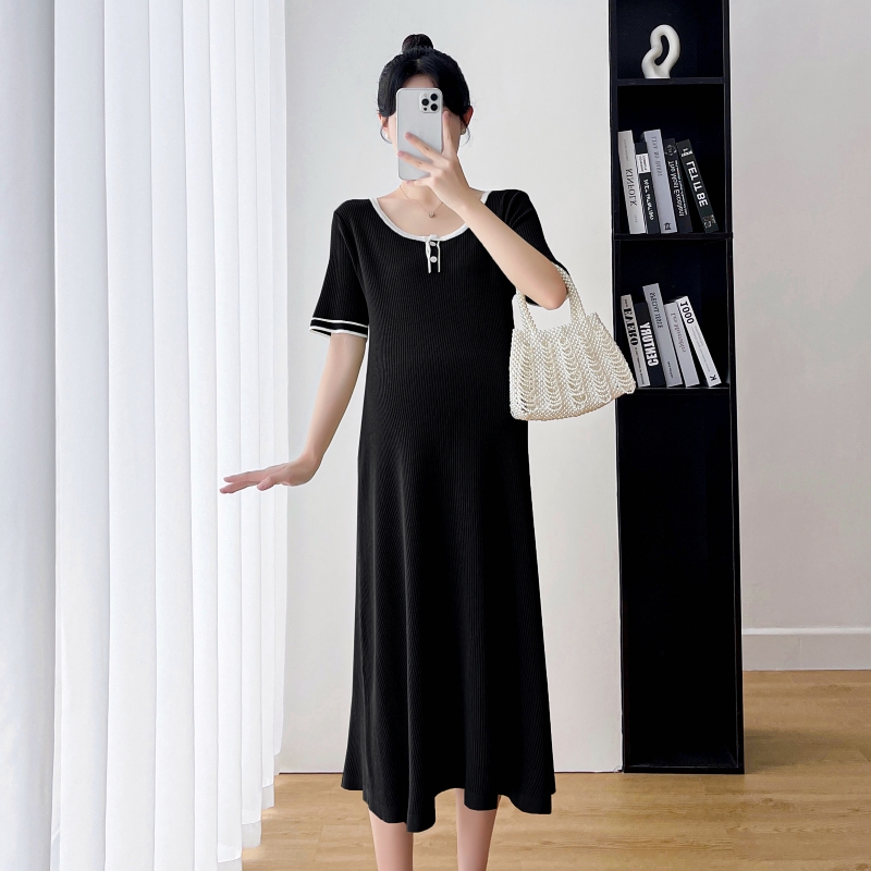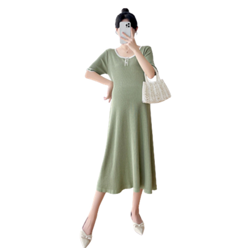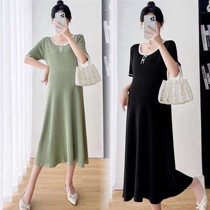 孕妇装夏装连衣裙2023新款韩版显瘦A字裙子夏季大摆X圆领过膝长裙