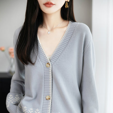 法式提花纯棉针织开衫女秋冬新款