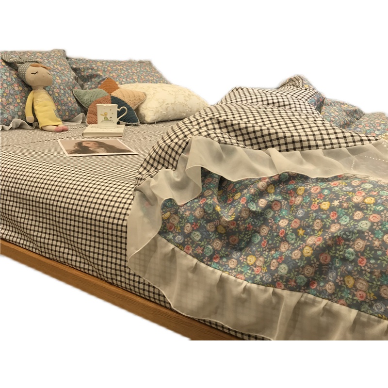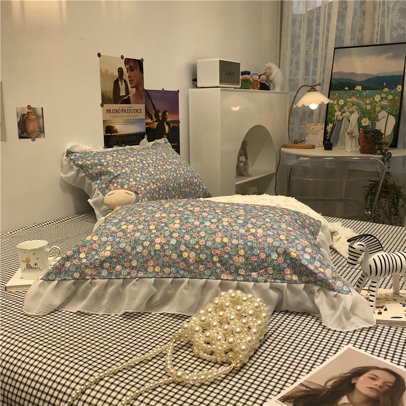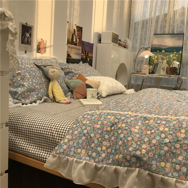 韩式田园风小碎花床上o四件套全棉纯棉被套蓝色1.5m1.8公主少女心