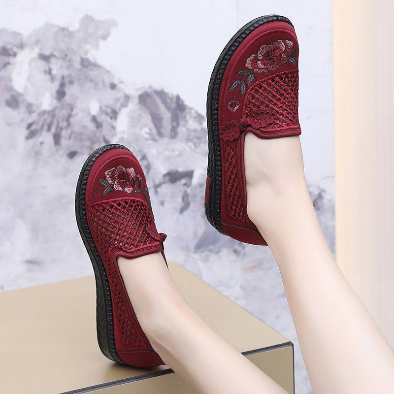 老北京布鞋女夏季网鞋平跟防滑软底休闲老人单鞋中老年妈妈凉鞋女