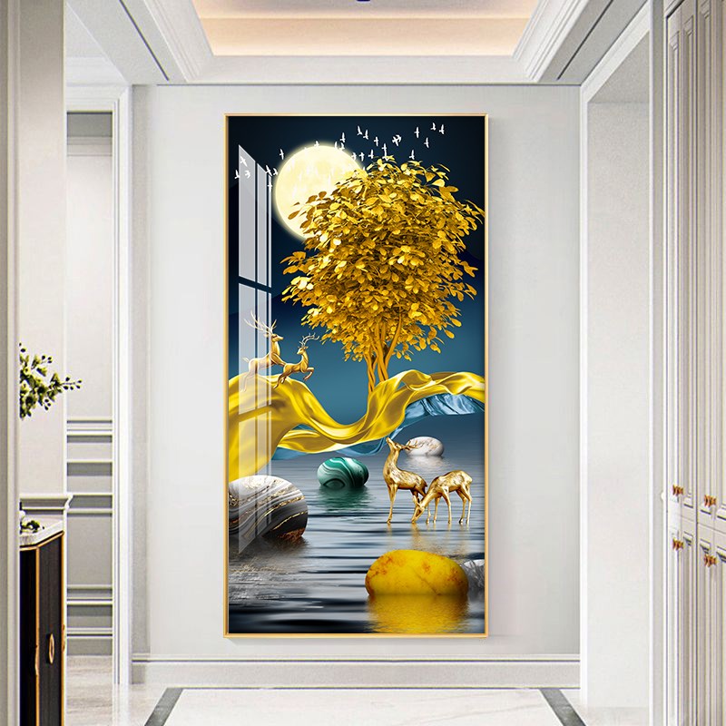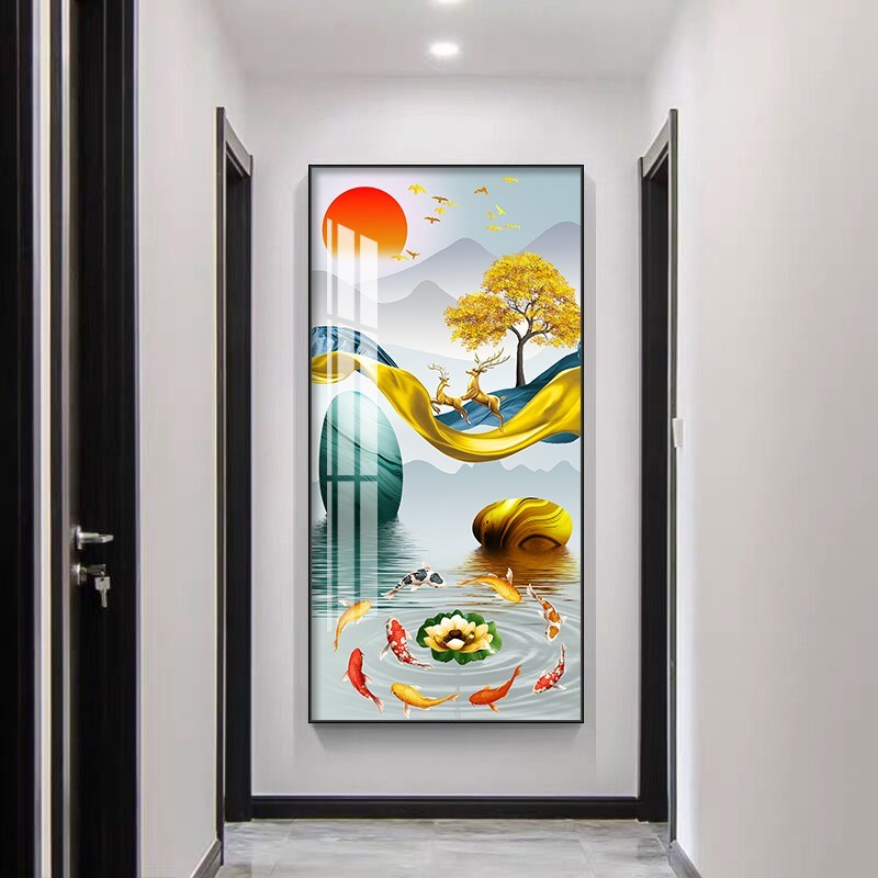 九鱼招财玄关装饰画简约走廊过道晶瓷画轻奢客厅进V门大气挂画带