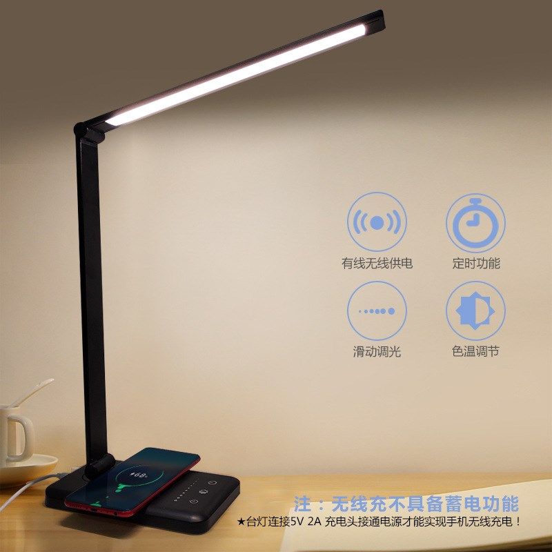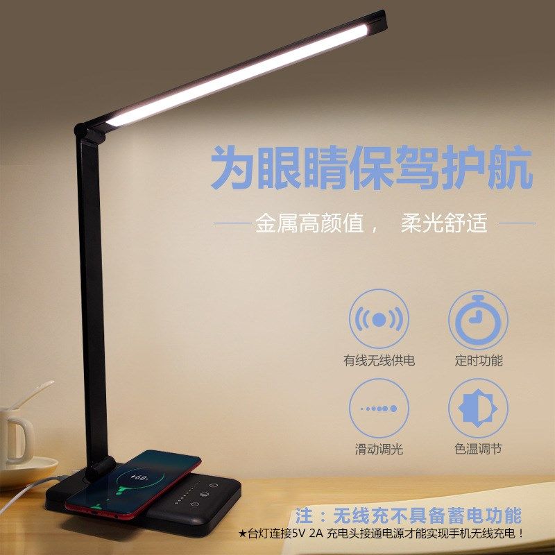护眼无线充电台灯 铝合金折叠触摸5档调光LED台灯 学生阅读台灯