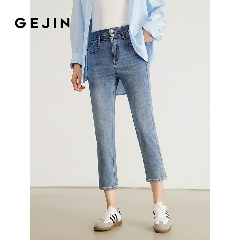 歌锦高品质显瘦九分裤清凉舒适夏季 双扣中高腰牛仔裤女裤子