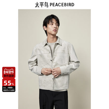 太平鸟男装 秋季提花夹克外套男翻领时尚休闲茄克潮流潮牌上衣